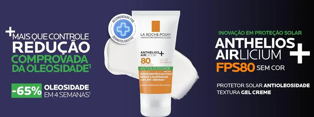 Cuide da sua pele com o Anthelios Airlicium+ FPS80 Sem Cor, da La Roche-Posay, um protetor solar facial para pele oleosa que combina alta proteção e tecnologia avançada para atender às necessidades das peles brasileiras.
